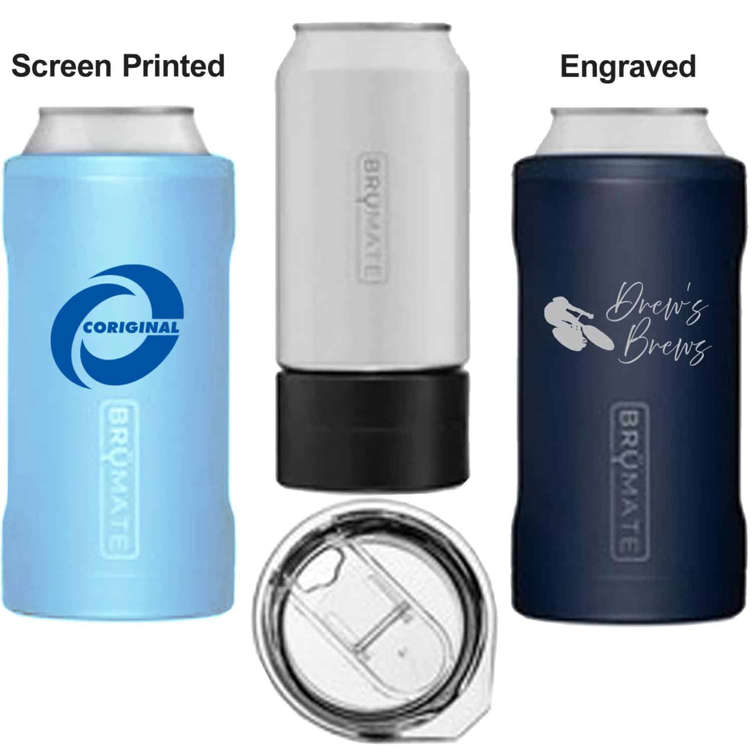 This 16oz versatile can OR bottle cooler fits all your favorite 16oz craft cans. It comes with a freezable adapter for 12oz cans and with one quick switch it turns into a 16oz pint glass. The three-in-one must have comes with 2 screw on lids- one to hold your can in place and the other is a lockable flip top lid with a mouthpiece. NO EQP. 7″ H x 3 1/2″ W