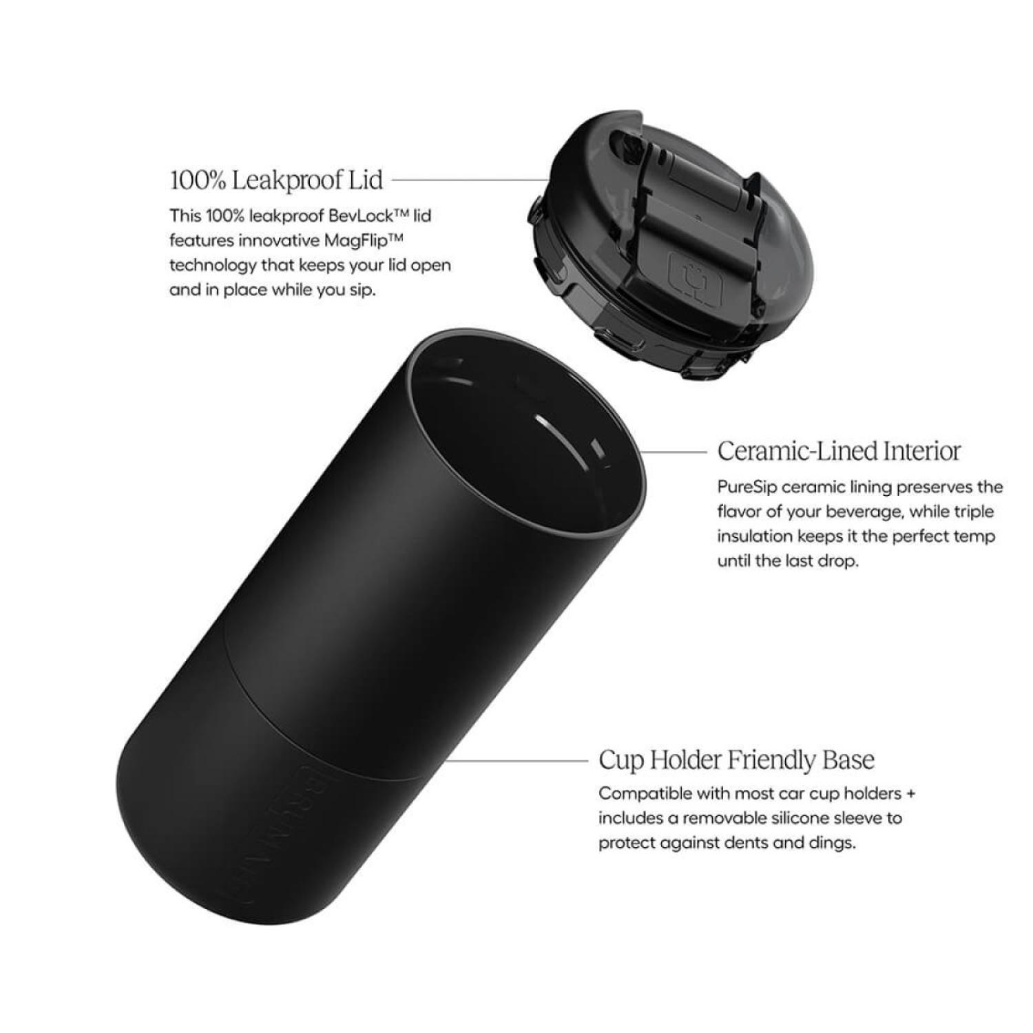 Strova was made for fueling your day, and is the most feature-packed coffee tumbler there is. It has our 100% leakproof BevLockâ„¢ lid to seal in your beverages and prevent spills, an insulated stainless steel body with a ceramic-lined interior to preserve. 7.375″ L x 3.125″ W x 2.875″ H